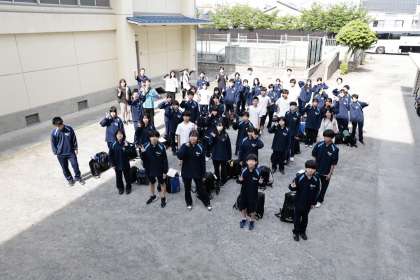 出発式での集合写真 みんな元気に出発です!