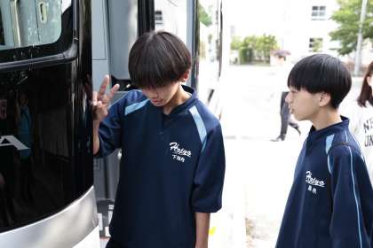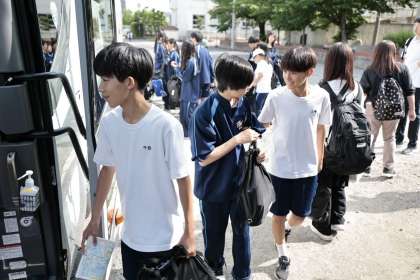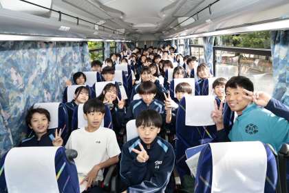 バスに乗り込んで全員写真