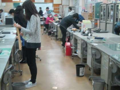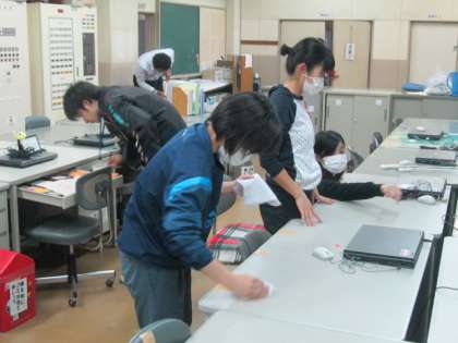 机の移動等を含め、教職員全員で職員室の掃除を行っています。