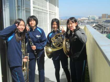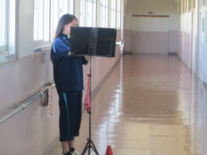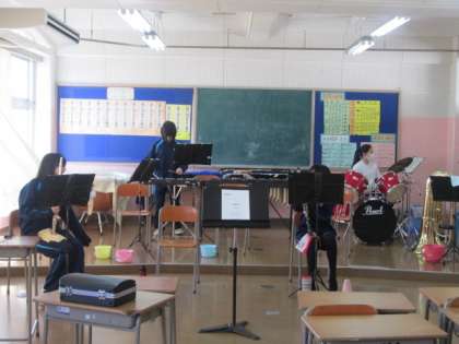 本来、年度初めのクラブ活動はありませんが吹奏楽部は入学式に向けて練習に励んでくれています。卒業生も応援に来てくれています。