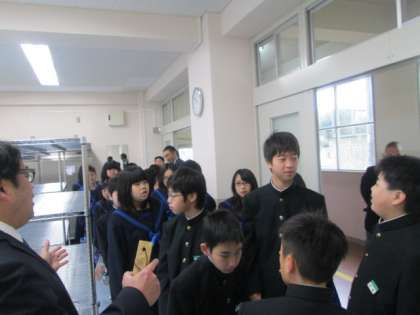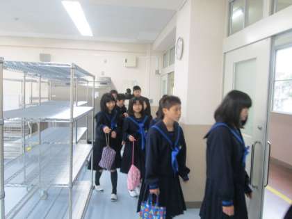 明日からの給食に備えて、1年生はさっそく配膳室がどこにあるか確認を行いました。