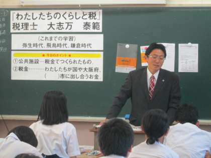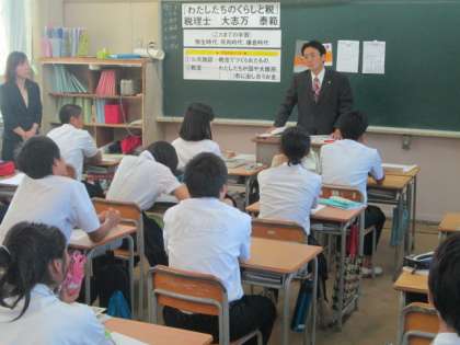 税理士さんに来ていただき、社会科の授業で行っていただいています。