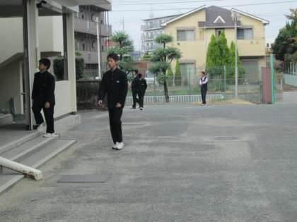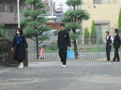 生徒会はあいさつ運動後に、中庭のゴミ拾いを行っています。