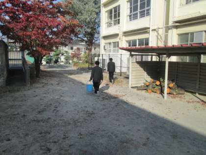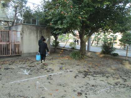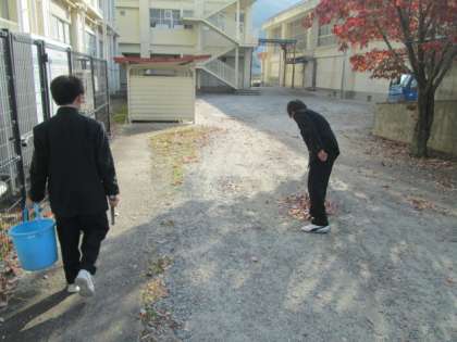 生徒会のあいさつ運動後のゴミを拾ってくれている様子です。