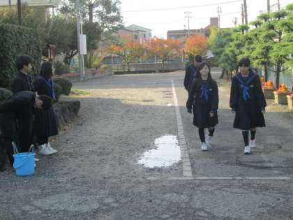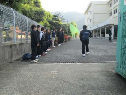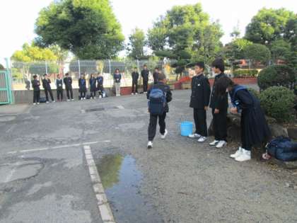 生徒会と2年生活委員会があいさつ運動を行っています。