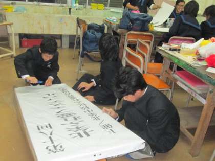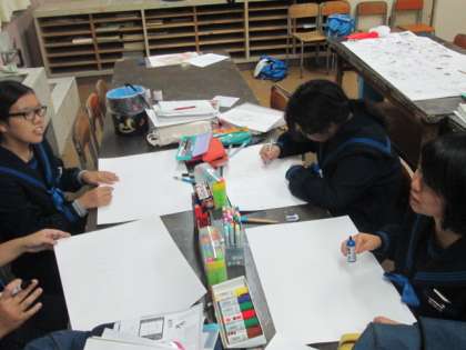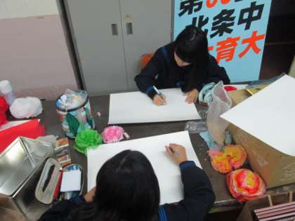 看板作りをがんばっています。美術部はプラ版・キーホルダーで出店します。