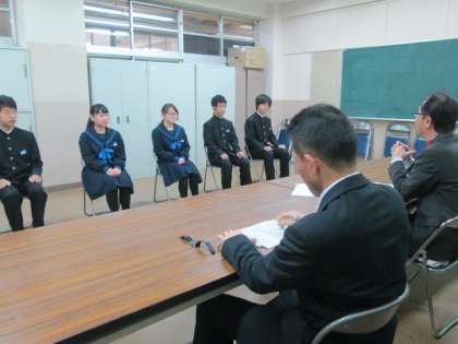 最上級生の3年生に進級することを自覚するために、クラスごとに集団面接を行います。
