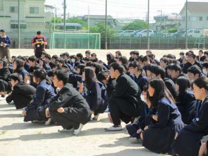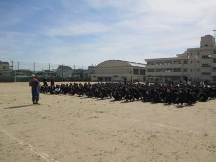 整列・点呼完了の後、大東・四條畷消防本部の方からご講話をいただきました。