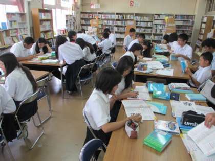 2年1組英語は、図書室で辞書の使い方を学習しています。