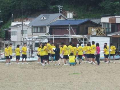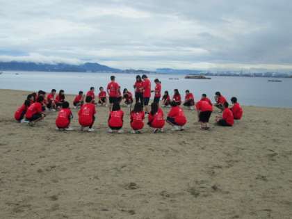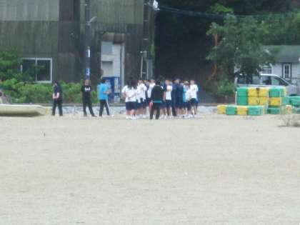 朝の集いも各クラス砂浜で行われていました。