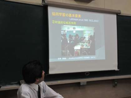 最後に講師の西口先生より、協同学習の基本要素について、本日の研究授業に関連づけながら具体的にお教えいただきました。