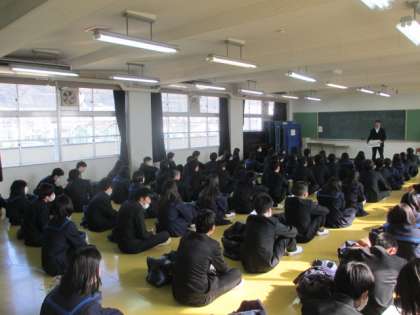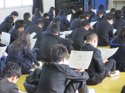受検する3年生は、引き締まった表情で、前日の注意事項を聴いていました。