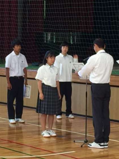 最初に陸上競技部の市春季大会の表彰を行いました。多数の入賞者がありました。