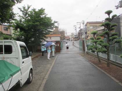 本日は、雨模様の天気にもかかわらず、傘をさして参加していただきました。