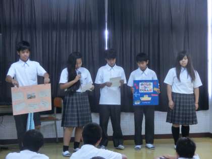 1年は、6限目、「異年齢交流学年報告会」を行いました。
