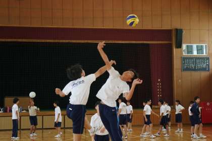 2年生は、4限目は球技大会でした。ソフトバレーボールと普通の固いバレーボール2つを使った「王様ドッジ」です。優勝は2組Dチームでした!
