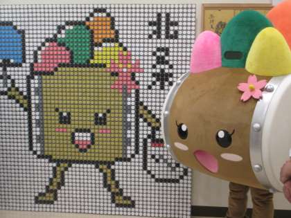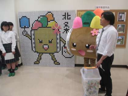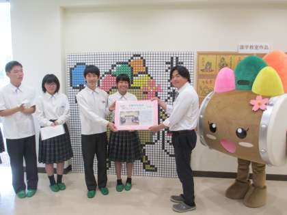 前年度後期生徒会で制作した「ほじょ山さくら」のエコキャップアートを北条コミュニティセンターに寄贈しました。