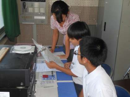 報道委員会では、お昼の放送のためのリハーサルをしていました。本番もうまくいくといいですね。