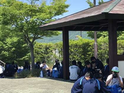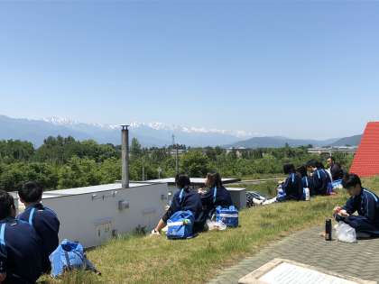 長野はいい天気です。梓川サービスエリアできれいな景色を見ながらお弁当を食べました。
