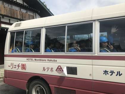 準備万端でバスへ乗り込み、スタート地点へ移動します。