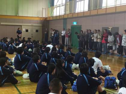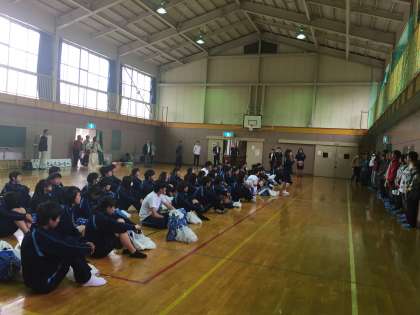 民泊を終えて全員無事に戻ってきました。今から退村式です。