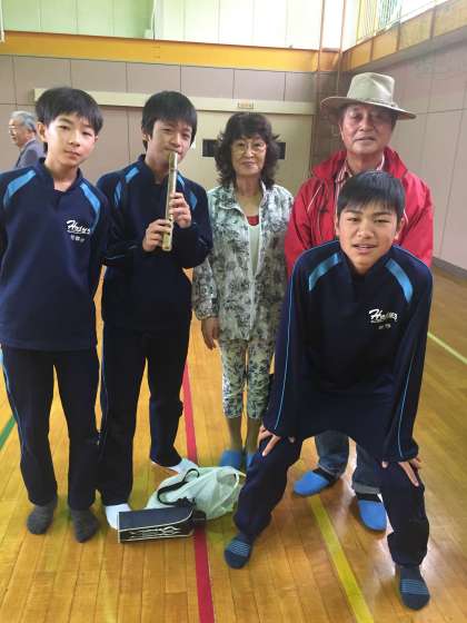 お世話になった民家さんにお別れの挨拶です。いろんな体験をさせていただいて、とても楽しかったようです。ケーナというボリビアやペルーが発祥の笛を作った班もありました。みんなの体験談を聞くのが楽しみです。