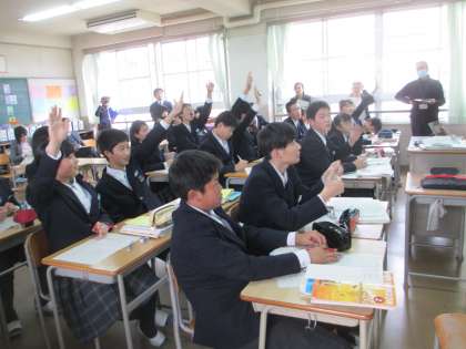 笑顔がたくさん見られ、楽しく英語を学んでいました。