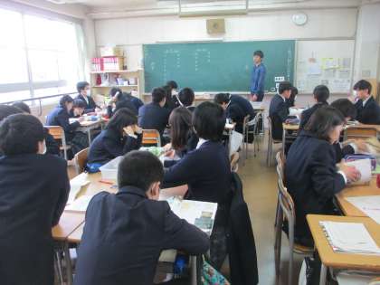 3年生は、1・2組とも社会でした。入試問題その他に取り組んでいました。
