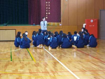 3年生は、体育館で体力測定の説明を聞いていました。