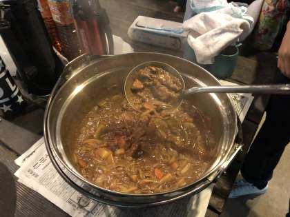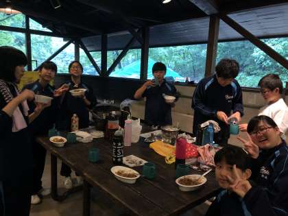 どの班も作るのが早く、11時半にはすべての班が完成。テーブルを囲んでの立食カレーパーティーとなりました。