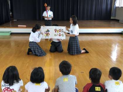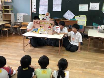 北条幼稚園、北条保育所、四条保育園に分かれて、1年生は異年齢交流に行きました。