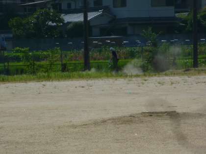 そんな朝からたいへん暑い中、教頭先生がグラウンドの草刈りをしてくださっています。