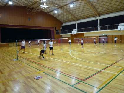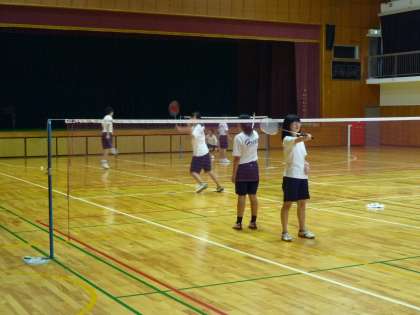 今日は、午前中、体育館でバドミントン部が練習していました。