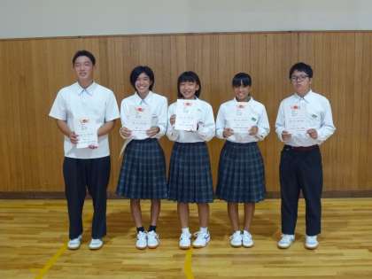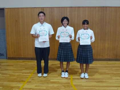 次は、北河内記録会で5人、北河内秋季大会で3人の入賞者を出した陸上競技部と、北河内英語暗誦大会で表彰された2年生の紹介です。