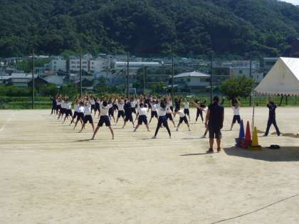 最初に行ったラジオ体操第一では、今日も先生に褒められていました。