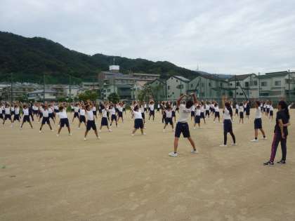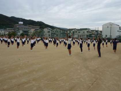 ラジオ体操と国歌・校歌の練習です。いずれも仕上げの段階です。