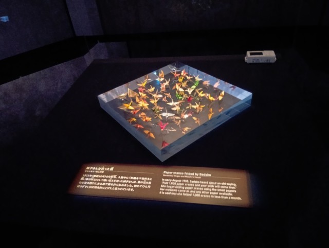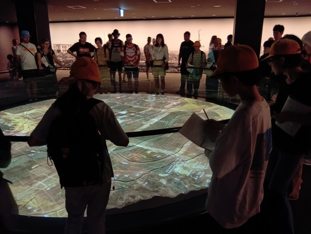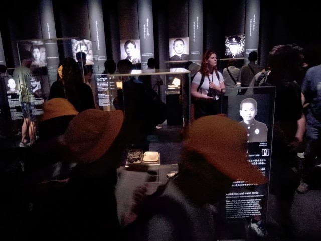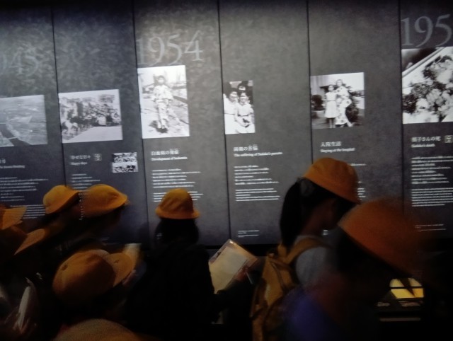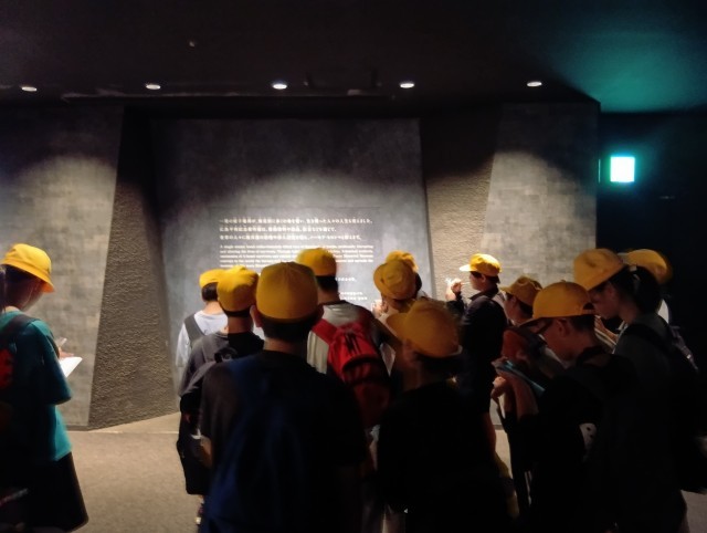 平和資料館では、学習班ごとに見学します。事前学習を踏まえて、真剣にメモをとっています。