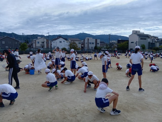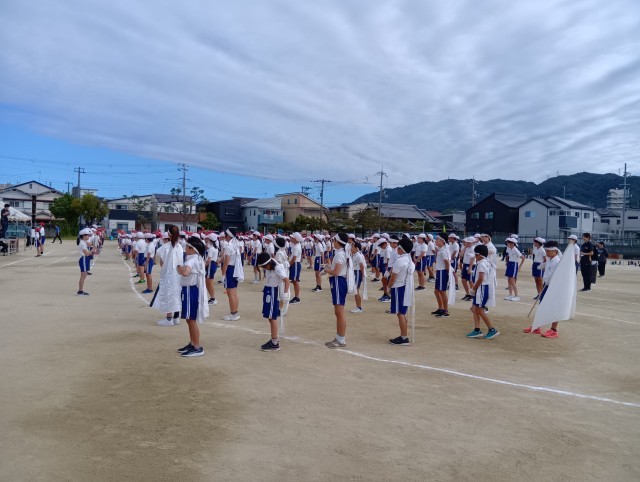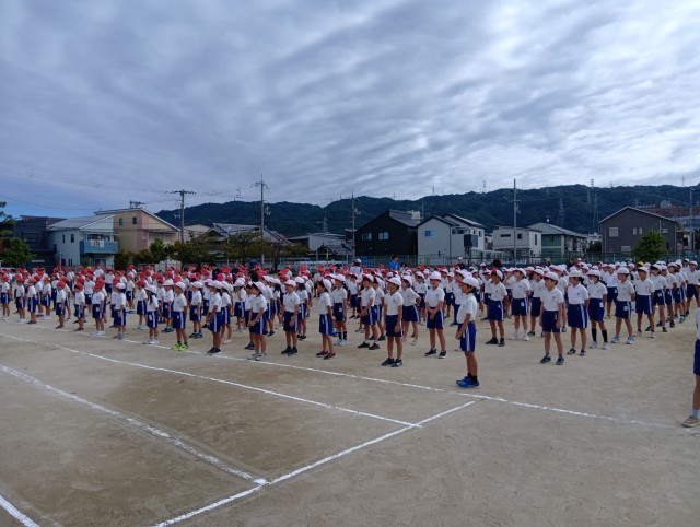 運動会全体練習を行いました。きれいに列を整えることができるように、自分の位置の確認をしました。1回目の練習とは思えないくらい「きびきびと」行動することができていました。次の練習も楽しみです。