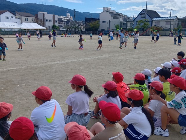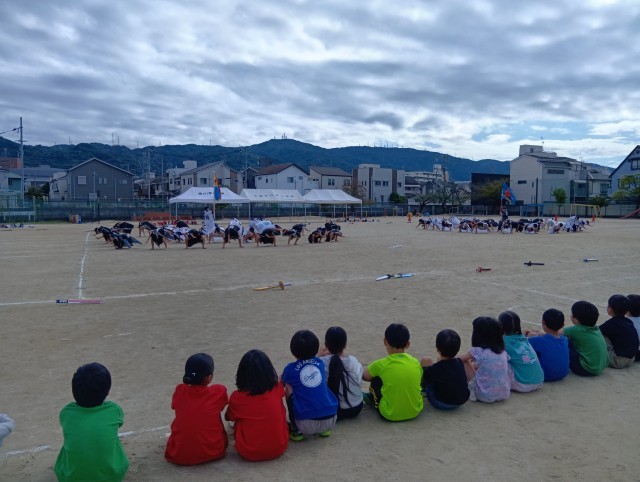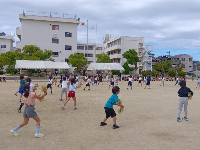 きょうだい学年でリハーサルをして、お互いの演技に大きな拍手を送りました。