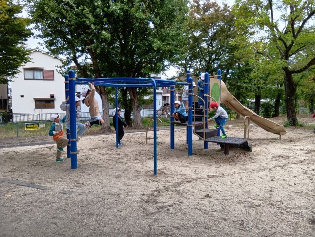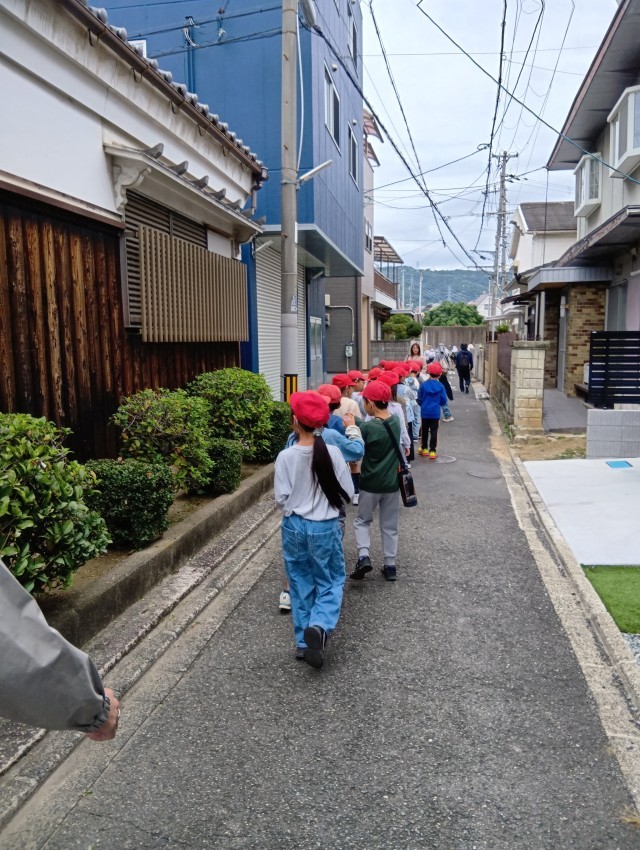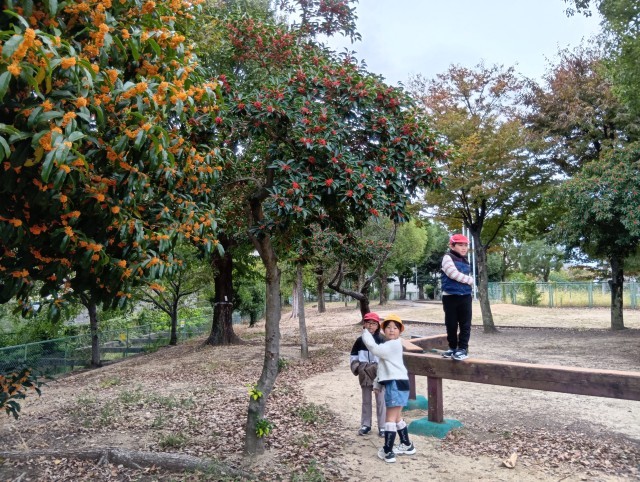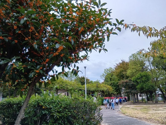 2年生が校区探検にでかけました。恩智川遊歩道、八幡神社、安楽寺を通って、御供田公園や泉公園で楽しく遊びました。御供田公園は、たくさんの金木犀が咲き誇り、あたり一面にやさしい香りがしていました。子どもたちは、秋を見つけたり、公園の正しい使い方を学んだり、安全のために町にあるものを見つけたりしていました。