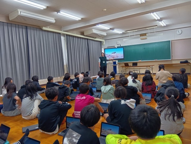 大東市教育委員会の指導主事を講師にお招きして、5年生がクロムブックの使い方を学びました。端末を使う時の約束など、たくさん教えていただきました。