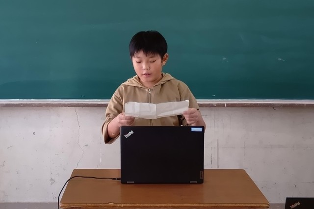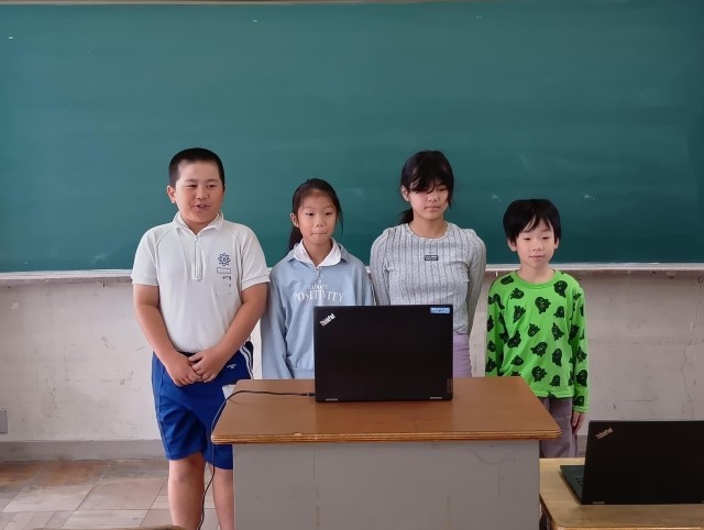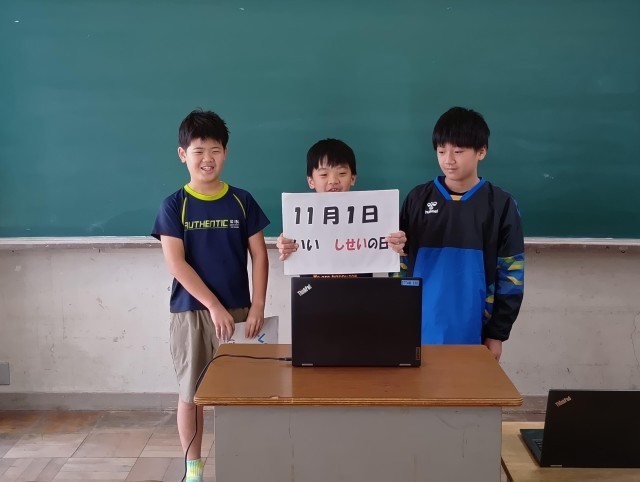 最後に、今週金曜日に実施される大東市小中学校弁論大会に出場する5年生の代表者が、スピーチを行いました。スピーチが終わると、教室から大きな拍手が聞こえてきました。離れていても、目と耳と心で話を聞くことができる優しい泉小の子どもたちです。