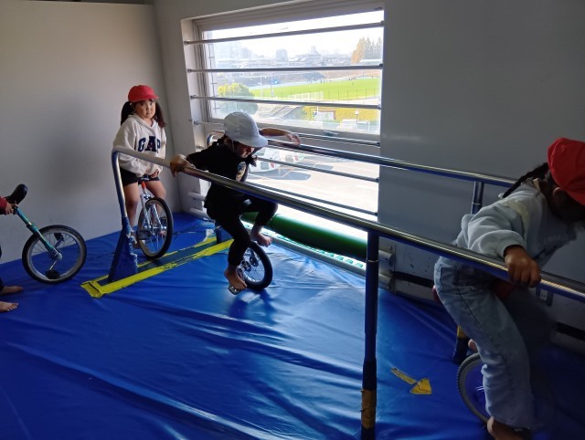 プラネタリウムを見た後、のびのび広場で遊んでいます。