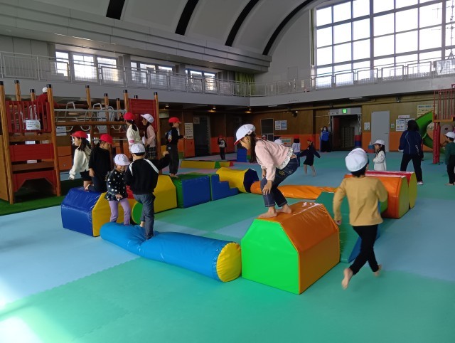 プラネタリウムを見た後、のびのび広場で遊んでいます。