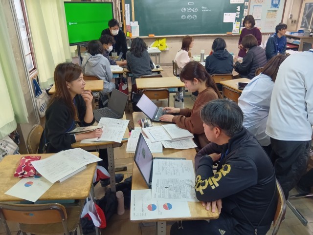 児童の下校後、3学期の授業公開にむけて、授業づくり校内研修をもちました。「子どもたちが自分の考えを工夫して伝えるために、どんな教具やしかけが必要だろうか。目標はどのように設定しようか」と、子どもたちの顔を思い浮かべながら、先生方の白熱した交流が止まりません。大東市教育委員会事務局の指導主事にもおこしいただき、研修の様子をご覧いただだきました。今後も、子どもたちのためにより良い授業を構築してまいります。