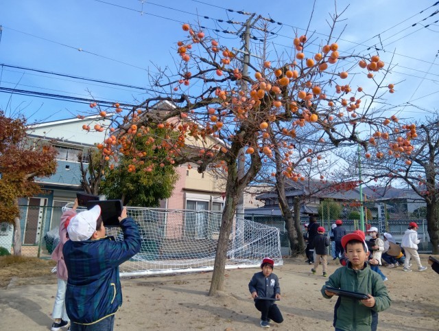 (2年)生活 冬みつけ。自分の端末で撮影していました。冬越ししているテントウムシをみつけたり、校庭の柿の実を見つけたり…。「渋柿は干し柿にするといいねんで」と、教えてくれた子もいました。よく知っているね。