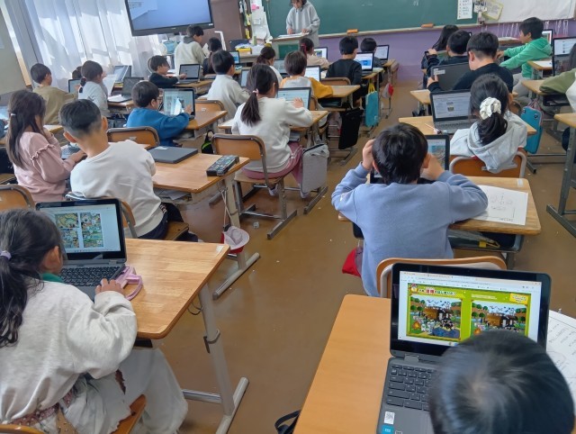 大東電子図書館で読書をしているクラスもありました。電子のよさ、紙媒体のよさ、上手に使い分けるとよいですね。