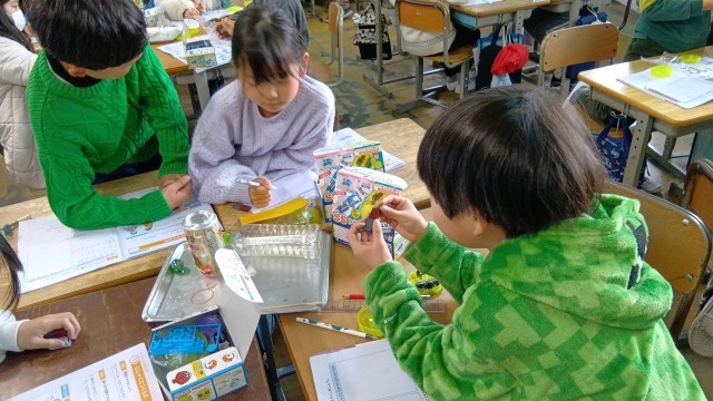 (3年)理科「じしゃくに引き付けられる物と引き付けられないもの」を実験で確かめています。調べていくうちに、新たな問いも出てきそうです。