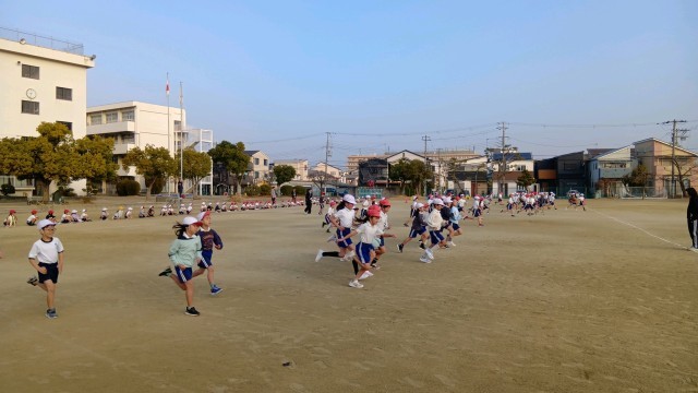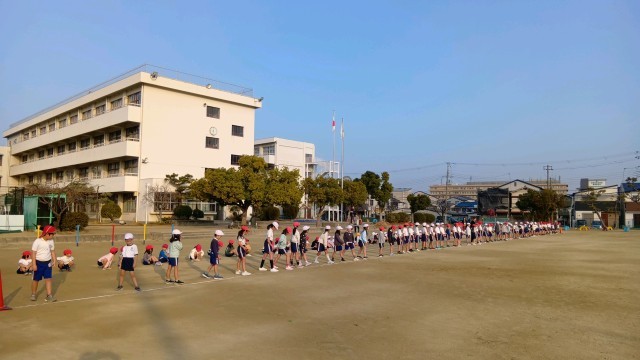今日の体力づくりは1年生と2年生です。学年の目標回数をめざして、一生懸命チャレンジする子どもたちです。お互いの頑張りに大きな拍手を送りあいました。