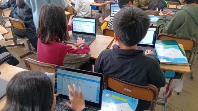 4年生算数「面積」の単元です。今まで学習した知識や方法と駆使して、L字型の面積を求めて、説明しようとしていました。友だちの意見を参考にしながら、一人ひとりが「作戦」をたてて真剣に取り組んでいました。